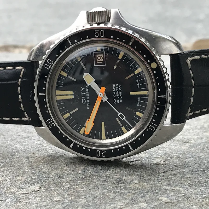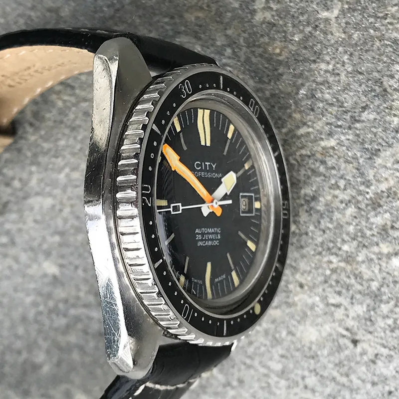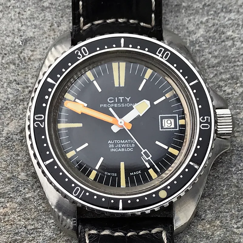 The watch brand “City” history is according to the following source: http://www.equationoftime.com/forums/showthread.php?41846-City-Professional-Diver-Small-Tweaks-to-Make-Perfect-Watch City is/was a Swedish brand that was owned by a company called JP Brandt AB in Stockholm. Brandt was a importer of Swiss watches and City was their low end (not in a bad way though) watch brand and the City models were also branded Facit, Moretime, Nilax and others during the 50’s through 70’s.